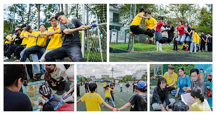 Sau phần khởi động đầy hứng khởi, các đội chính thức bước vào hành trình chinh phục 5 trạm trò chơi dân gian. Từ “Kéo co” thể hiện sức mạnh và tinh thần phối hợp, “Ném lon” đòi hỏi sự khéo léo, “Nhảy dây tập thể” rèn tính nhịp nhàng, “Bịt mắt bắt dê” giúp tăng khả năng quan sát và phản xạ linh hoạt, đến “Ba điều tám chuyện” thể hiện sự ăn ý và thấu hiểu giữa các thành viên qua những câu ca dao tục ngữ quen thuộc – mỗi trò chơi đều mang đến những trải nghiệm vui tươi, giúp sinh viên gắn kết, thể hiện bản lĩnh và phát huy tinh thần đồng đội của mình.