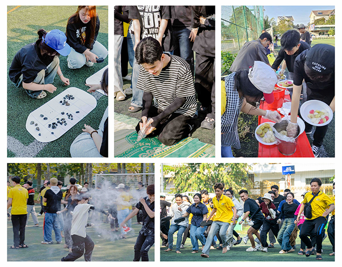 Ngay từ những phút đầu khai mạc, không khí tại khu vực tổ chức đã trở nên vô cùng rộn ràng và náo nhiệt. Các bạn sinh viên nhanh chóng hòa mình vào chuỗi trò chơi dân gian vừa quen thuộc vừa mới mẻ, thể hiện sức trẻ tràn đầy năng lượng và hứng khởi.
