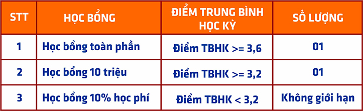 Không áp dụng học bổng đồng thời với chương trình khuyến học khác.