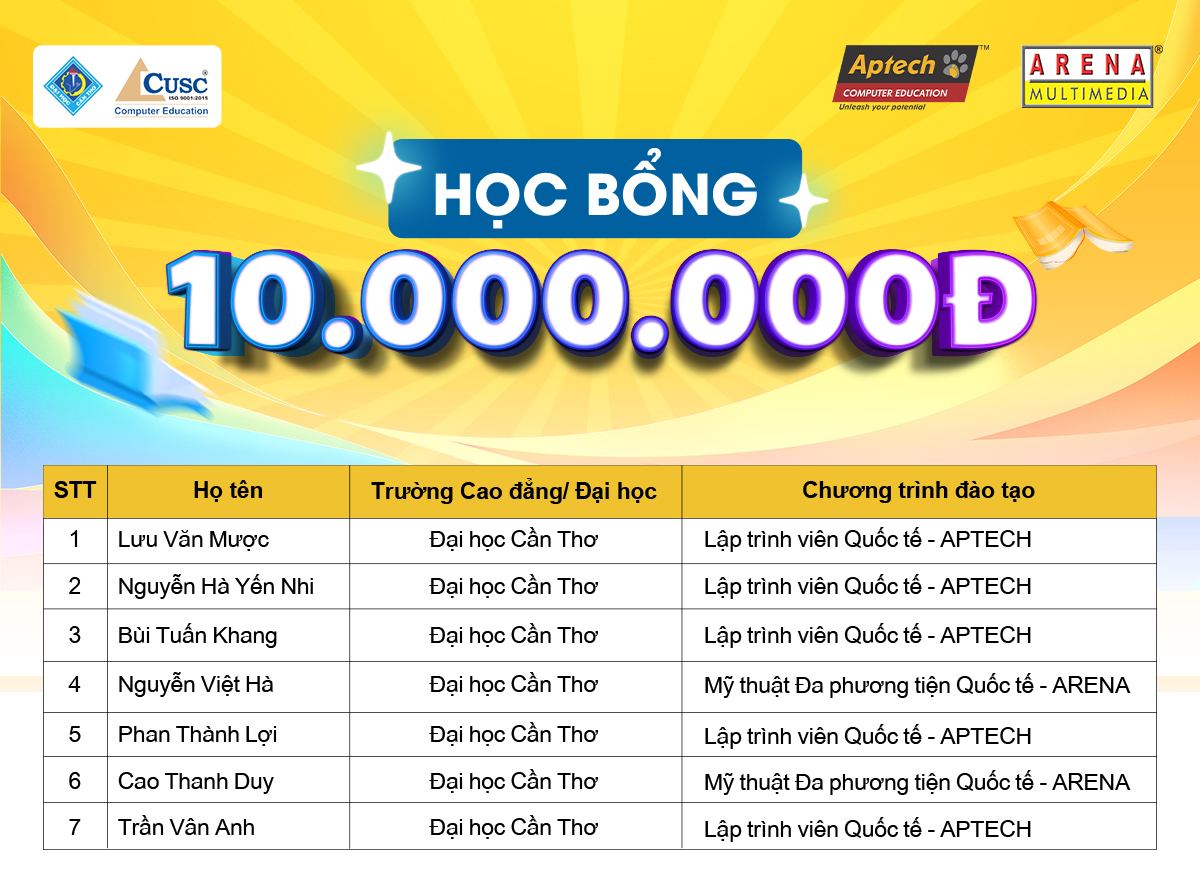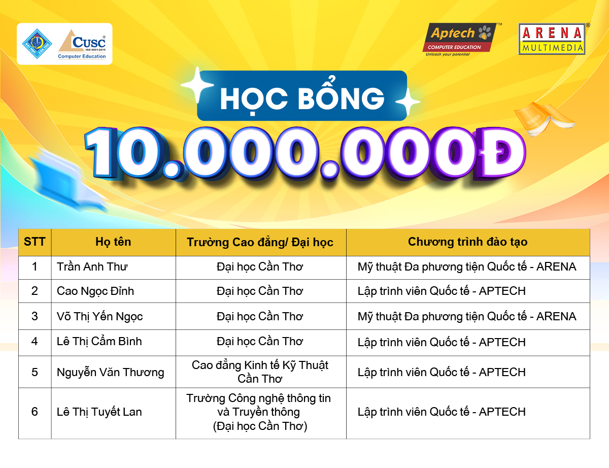 Với thành tích nổi bật trong học tập và tinh thần cầu tiến, các bạn sinh viên đạt được học bổng chính là những gương mặt tiêu biểu sẽ tiếp tục khẳng định tài năng, chinh phục tri thức và khởi đầu hành trình mới cùng CUSC.