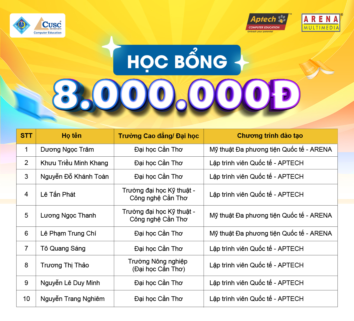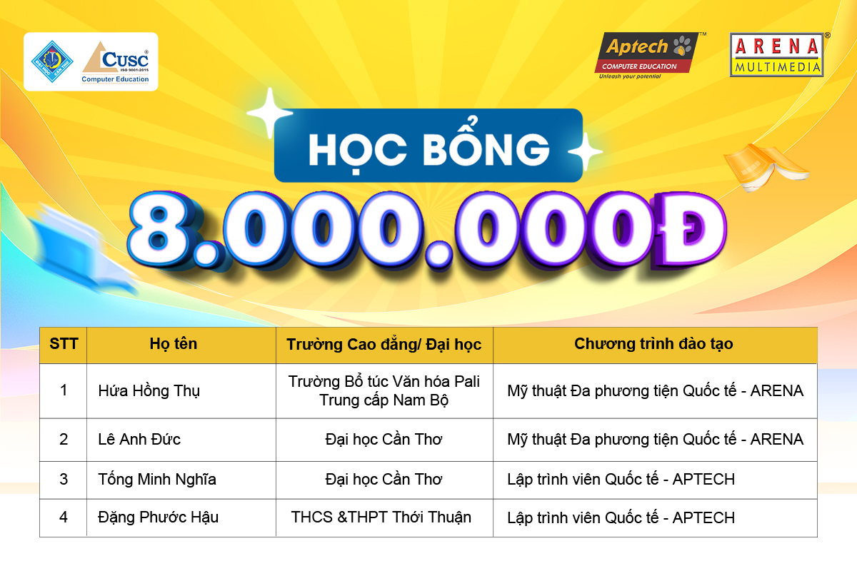 Chúc mừng các sinh viên đạt Học bổng trị giá 8.000.000 đồng từ CUSC